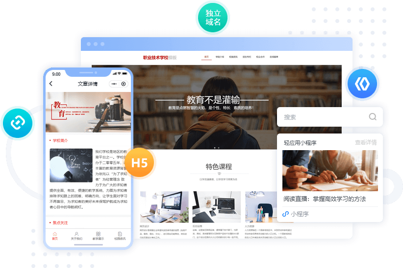覆盖手机端、电脑端、微信小程序、百度小程序及字节小程序